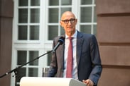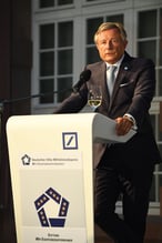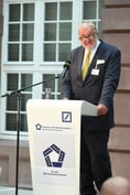 Dr. Jürgen Großmann, Vorsitzender des Stiftungsrates der Stiftung Wir Eigentümerunternehmer und Christian Sewing, der Vorstandsvorsitzende der Deutsche Bank AG als Hausherr, begrüßten die Gäste aus Politik, diplomatischem Korps, Wirtschaft und Gesellschaft im Atrium. Senator Prof. Dr. Volker Römermann, Vorstand der Römermann Rechtsanwälte AG und neu gewählter Präsident des Bundesverbandes Deutscher Mittelstand e. V. – Wir Eigentümerunternehmer, hatte die ehrenvolle Aufgabe, den Preis an Armin Laschet zu überreichen.
