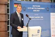 „Was lange währt, wird endlich gut!“ und es wurde am 24. Juni im Atrium der Deutschen Bank in Berlin Unter den Linden wirklich eine „gute“, eine beeindruckende 27. Verleihung unseres Deutschen Elite- Mittelstandspreises an den Preisträger, den NRW-Ministerpräsidenten Armin Laschet. In 2019 wurde die Verleihung an ihn von der Jury beschlossen, Anfang 2020 hätte die Verleihung stattfinden sollen, wegen Covid wurde sie mehrfach verschoben und jetzt konnte sie, relativ kurzfristig angesetzt, und bis kurz vorher noch unsicher wegen der Corona-Entwicklung und der Auflagen des Landes Berlin, dann doch in dem angemessenen feierlichen und würdevollen Rahmen stattfinden.