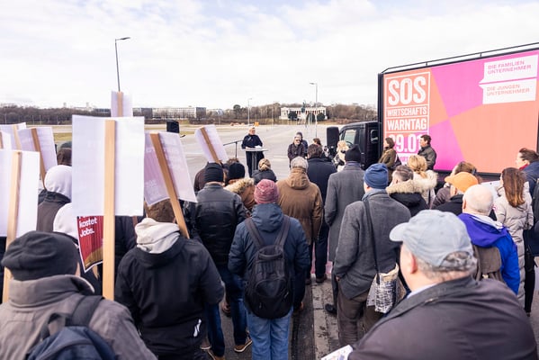 Es reicht! Viele Unternehmerinnen und Unternehmer haben gestern gezeigt, was sie von der Wirtschaftspolitik der Regierung halten. Unsere Verbandsgruppe Wir Eigentümerunternehmer war dabei und hat sich am bundesweiten Protesttag der Unternehmerinnen und Unternehmer und Selbständigen, dem „Wirtschaftswarntag“ am 29. Januar beteiligt. „Wirtschaftskrise ist jetzt: Gemeinsam die Politik wachrütteln!“ war das Motto.